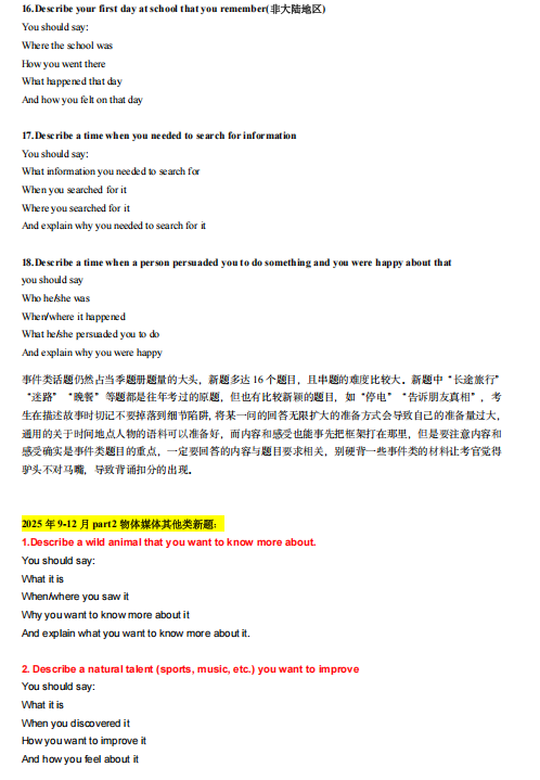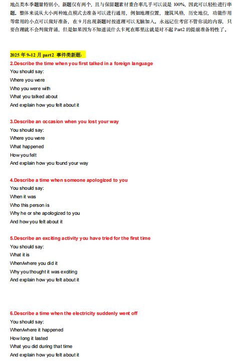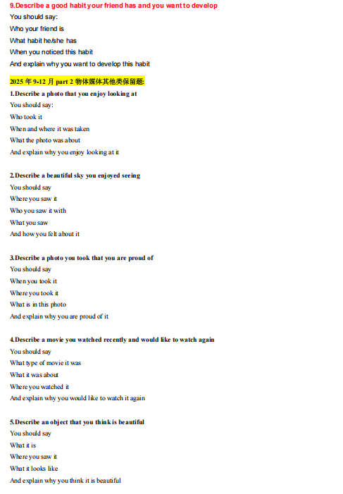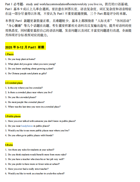 本文为新航道长沙学校雅思教研组整理新航道2025年10月雅思口语考试分析。每场考试结束后,新航道雅思老师及时推送本场考试的完整版考题回忆和解析。可关注新航道长沙学校官方网站http://cs.xhd.cn,雅思分析、托福分析栏目将及时更新,帮助小伙伴们更好的备战雅思托福!
