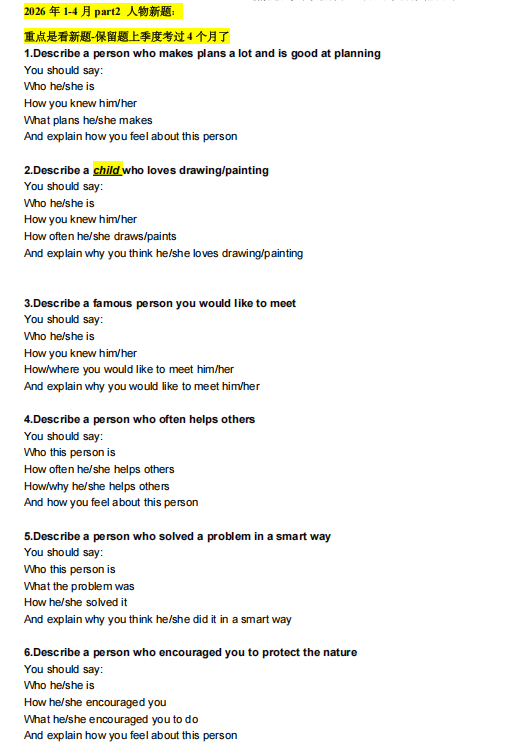 本文为新航道长沙学校雅思教研组整理新航道2026年4月雅思口语考试分析。每场考试结束后,新航道雅思老师及时推送本场考试的完整版考题回忆和解析。可关注新航道长沙学校官方网站http://cs.xhd.cn,雅思分析、托福分析栏目将及时更新,帮助小伙伴们更好的备战雅思托福!