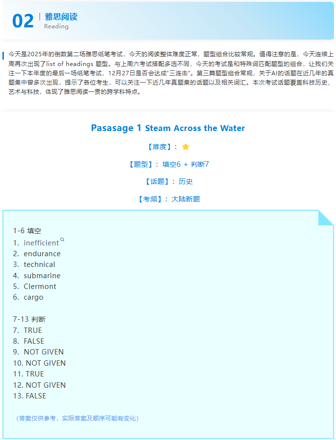 本文为新航道长沙学校雅思教研组整理新航道2025年12月20日雅思考试回忆。每场考试结束后,新航道雅思老师及时推送本场考试的完整版考题回忆和解析。可关注新航道长沙学校官方网站http://cs.xhd.cn,雅思分析、托福分析栏目将及时更新,帮助小伙伴们更好的备战雅思托福!