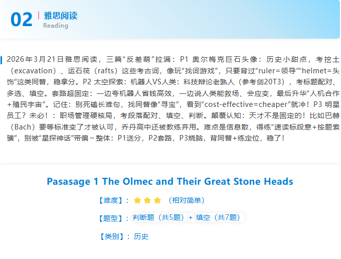 本文为新航道长沙学校雅思教研组整理新航道2026年3月21日雅思考试回忆。每场考试结束后,长沙雅思老师及时推送本场考试的完整版考题回忆和解析。可关注新航道长沙学校官方网站http://cs.xhd.cn,雅思分析、托福分析栏目将及时更新,帮助小伙伴们更好的备战雅思托福!