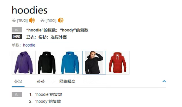所以这里大家一定要注意hoodie在英文中指的一定是带着帽子的这种卫衣哦