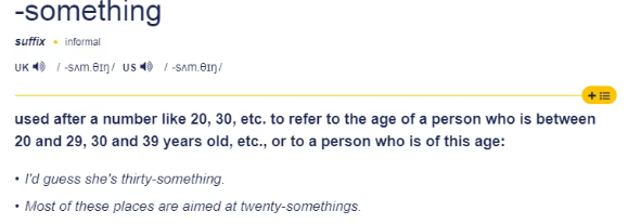 二十多岁晚期(奔三))=I'm in my late 20s.