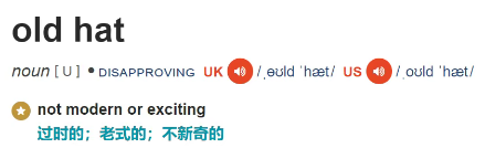 old hat不是"老帽子“,它的意思是“老旧的,过时的”。