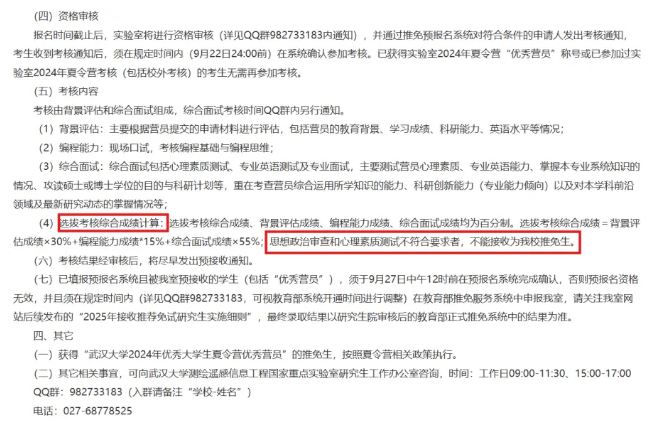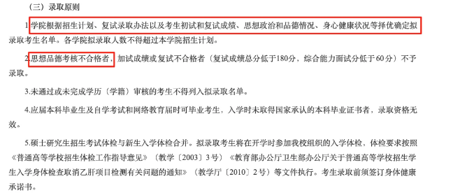 比较少数的学校会采取这种录取方法。即不仅考虑学生的面试笔试成绩,还要综合考虑学生思想政治水平、学术诚信表现和身体健康情况。这也是为什么有些院校会在夏令营/预推免开始前填写心理问卷调查。
