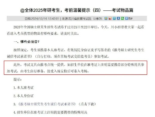 四川2025研考考场统一配备文具↓