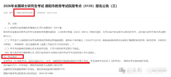 考试地点:本报考点(5138报考点)设四川省东汽八一中学、成都师范学院德阳高级中学两个考点