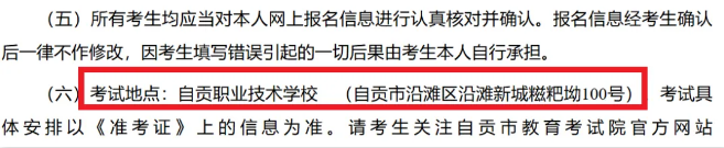 考试地点:自贡职业技术学校 (自贡市沿滩区沿滩新城糍粑坳100号)