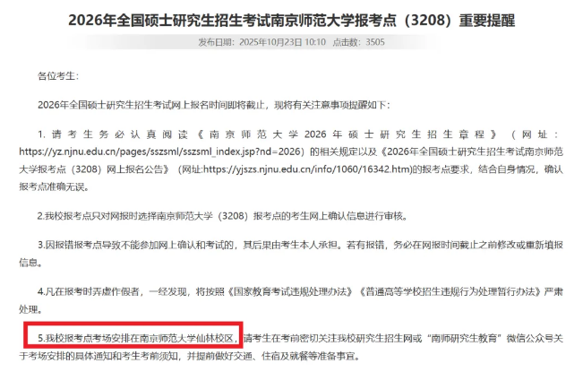 2、选择某某大学为报考点的,一般情况下,最后考试的地方就在这所学校,具体哪个校区,要看学校的公告,也可以向往届的学长学姐打听,或者直接到学校研究生院官网查找近两年的考场分配,看是否有规律。最终准考证下载下来之后就可以知道考场在哪里了;