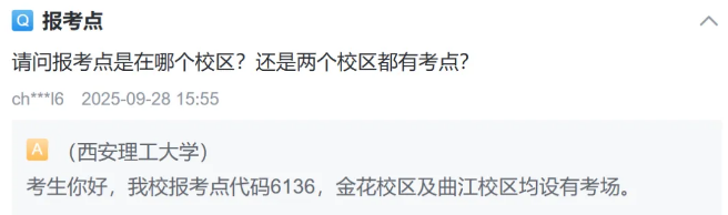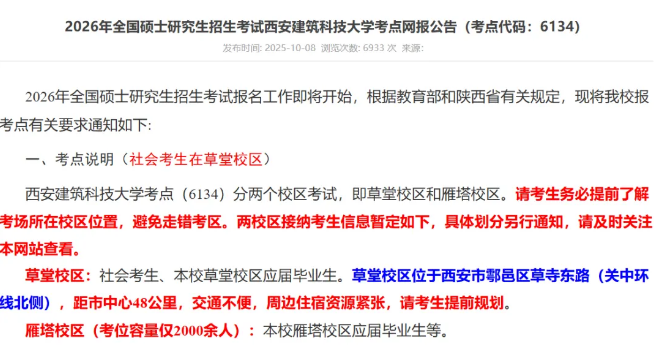 西安建筑科技大学考点(6134)分两个校区考试,即草堂校区和雁塔校区。