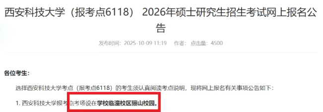 西安科技大学报考点考场设在学校临潼校区骊山校园