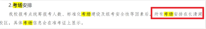 所有考场安排在长清湖校区,具体考场信息会在准考证上显示。
