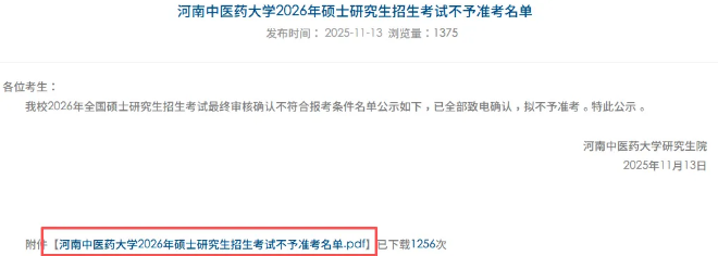河南中医药大学也公布了审核确认不符合报考条件的考生名单,且全部致电确认。