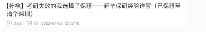 其实早在2022年,就有人动了“留级抢名额”的心思。B站一位up主发视频称自己考研失败,因此选择通过修不满学分的方式强行延毕,并顺利参与下届保研,最后竟成功上岸清深。