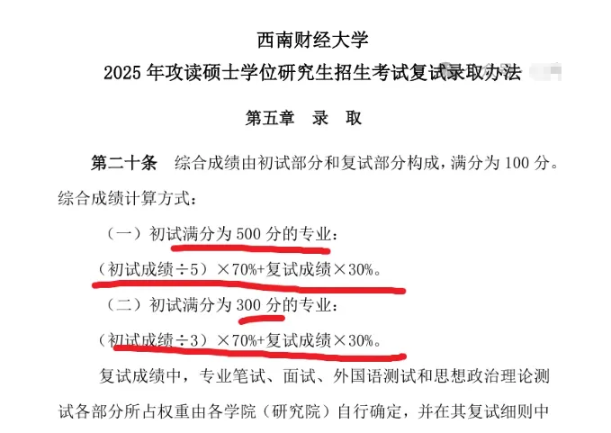 录取总成绩(满分500分)=初试成绩×70%+[(复试成绩÷3)×5]×30%