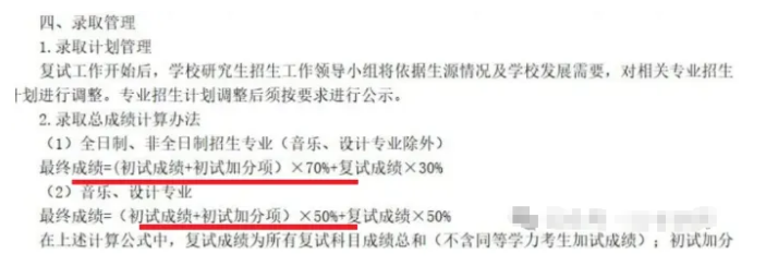 最终成绩=(初试成绩+初试加分项)×70%+复试成绩×30%