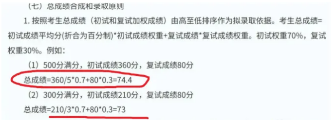 总成绩=初试总成绩(折合成100分制)×0.7+复试总成绩(折合成100分制)×0.3