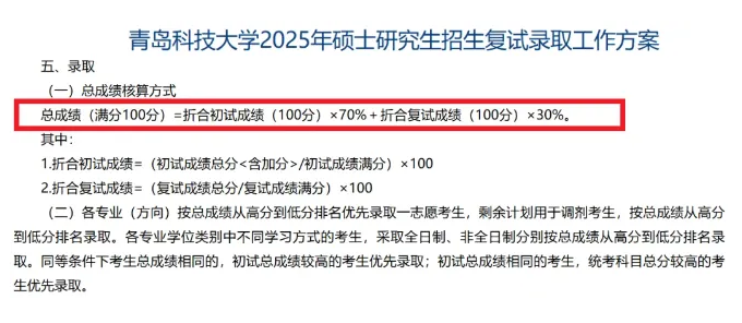 总成绩=初试总分/5*0.7+复试成绩*0.3