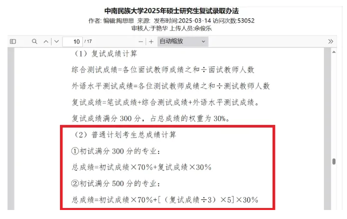 下面整理部分院校去年2025考研总成绩计算方法,来看看一些初试成绩占比70%的院校。