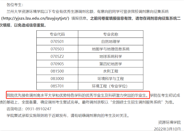 兰州大学每年都会发布优秀生源调剂办法,即使到今年也会发布大量调剂信息。包括很多热门专业,比如金融专硕、经济学、英语笔译/口译、工商管理、公共管理、电子信息、法律硕士等。