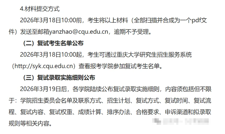 重庆大学复试时间为2026年3月20日—2025年3月30日。