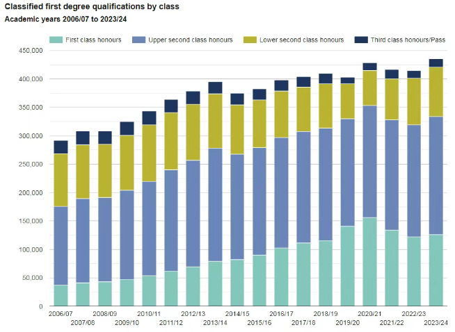 而据英媒报道,英国大学获得一等学位的学生数量已降至新冠爆发前的最低水平。