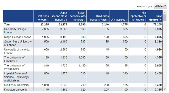 从学校来看,帝国理工一等学位占比有46%,UCL有38%。