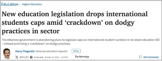 根据《每日电讯报》的报道,澳政府已正式放弃对留学生人数上限的立法!