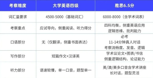 很多同学不清楚自己的四级水平对应雅思多少分,盲目备考只会事倍功半。先看对标,找准自己的起点,才能制定合理目标。