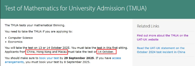 特别说明:剑桥大学的2026 Entry申请者,则必须参加25年10月场次的笔试。