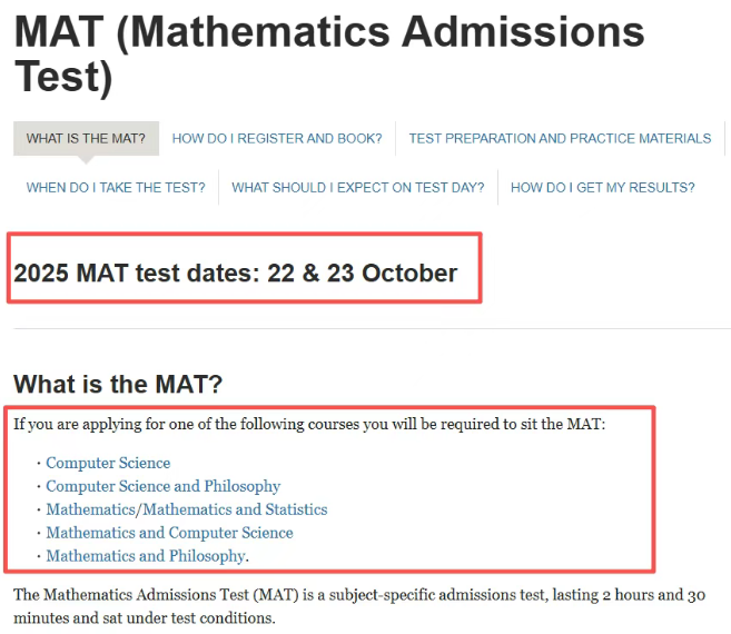 MAT笔试考试日期为【2025年10月22日-23日】,申请牛津大学以下专业的申请需要提交MAT成绩: