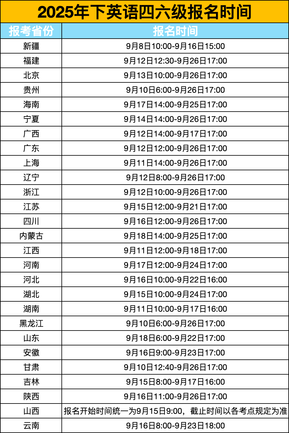 温馨提示:以上报名时间信息来源于网络整理,具体时间安排请以各地考试院或所在高校官方通知为准,切勿错过关键节点!