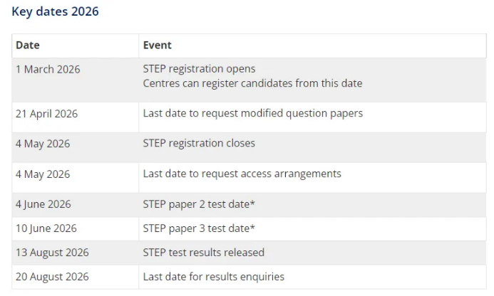 英国OCR考试局已正式公布2026年STEP考试安排,各环节时间均有所提前。