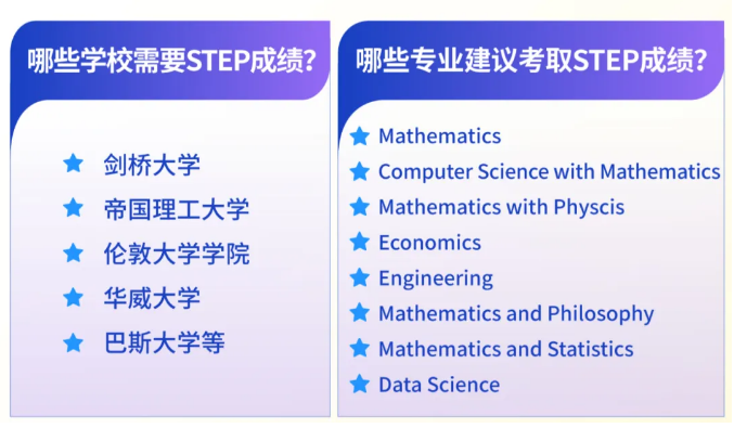 STEP考试成绩被剑桥大学、帝国理工学院、伦敦大学学院、华威大学等院校的数学、计算机相关专业作为重要录取依据。