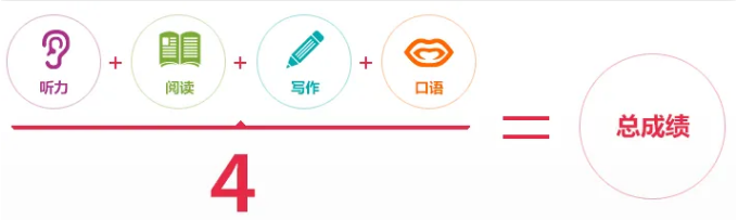 总分一般是通过四个单项分数平均后四舍五入的成绩,通常是以接近半分又或者是整分成最终成绩。