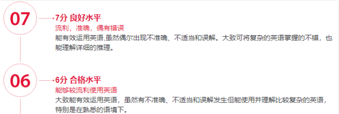 C级: 7.0,阅读和写作6.5,听力和口语6.0;