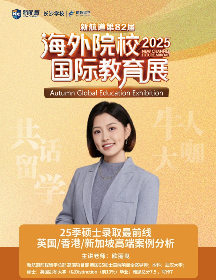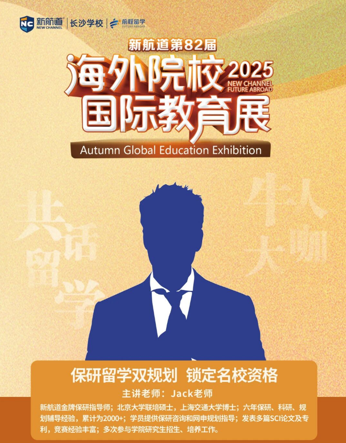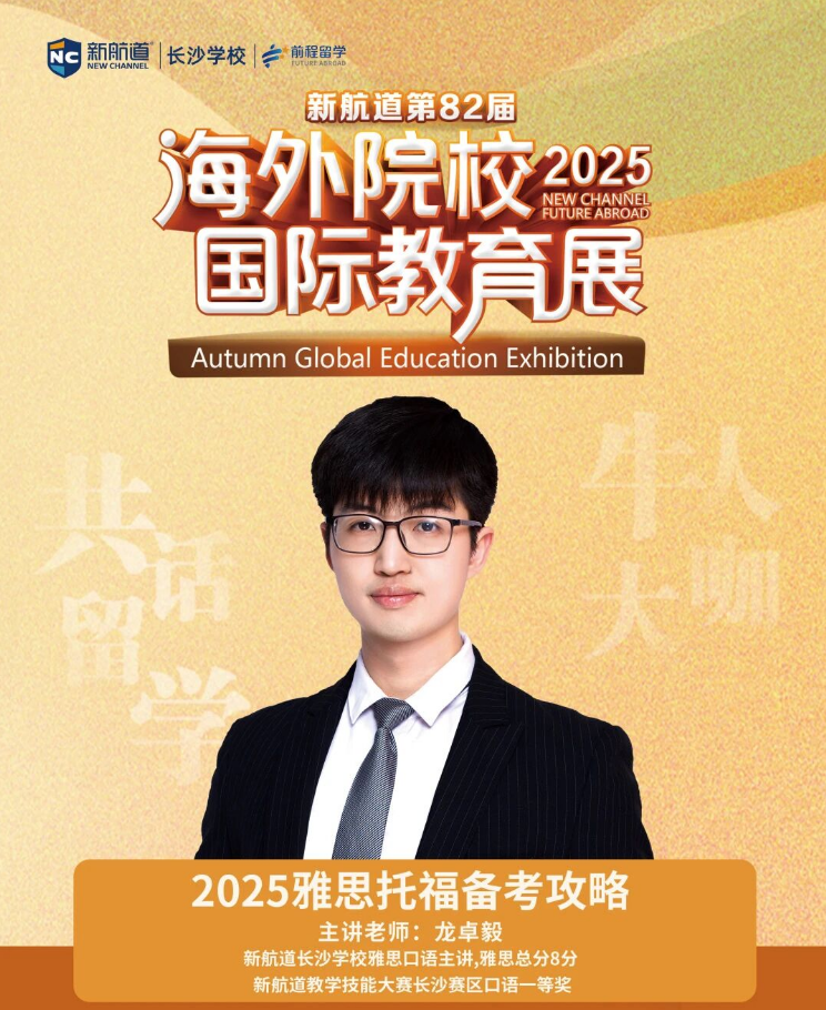 充满变数的国际形势下,留学之路应该如何走?各地区院校的招生政策未来会收紧还是放松? 海外高校招生官最看重申请者的哪些特点?如何明确未来留学地区、院校及专业?中外合作办学项目如何规划?新航道第82届海外院校2025国际教育展来啦,10月25日(周六)13:30,长沙君悦酒店3楼君府1厅,超多惊喜~