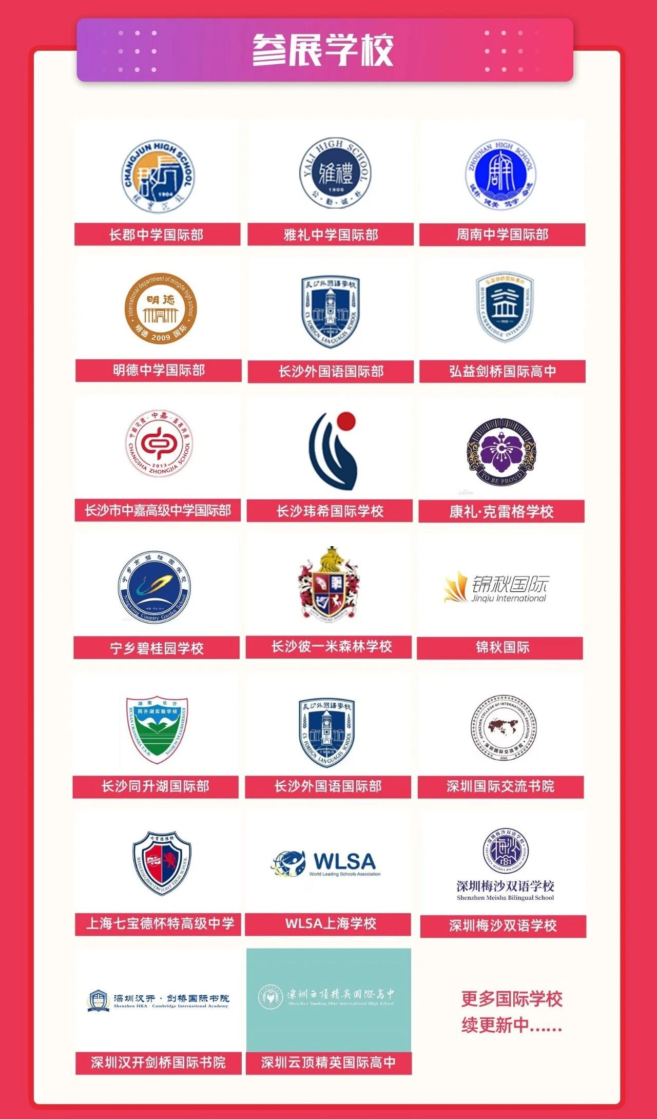 一场聚焦湖南省内外20+所学校的择校展将于4月25日(本周六)重磅来袭:展会集结湖南省内外双语 / 国际化学校矩阵,覆盖全阶段、全路径升学需求,无需辗转奔波,就能一次性对接多所优质院校: