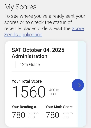 输入自己的用户名和密码以后就可以看到总分以及读写与数学的具体分数。
