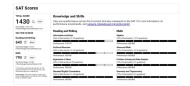 值得一提的是,成绩单上并不会显示具体哪道题做错了,点击see score details 以后只有每个分类的分数阶段。
