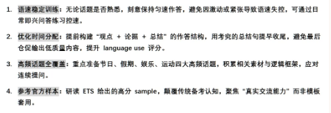 3. 备考核心需从 “技巧导向” 转向 “能力导向”,通过场景化训练、即兴表达练习,提升语言实际运用能力,而非单纯刷题背模板。