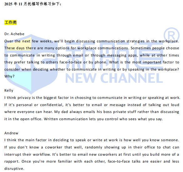 本文为新航道长沙学校托福教研组整理新航道2025年11月托福写作考试分析。每场考试结束后,新航道托福老师及时推送本场考试的完整版考题回忆和解析。可关注新航道长沙学校官方网站http://cs.xhd.cn,雅思分析、托福分析栏目将及时更新,帮助小伙伴们更好的备战雅思托福!