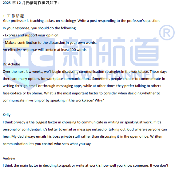 本文为新航道长沙学校托福教研组整理新航道2025年12月托福写作考试分析。每场考试结束后,新航道托福老师及时推送本场考试的完整版考题回忆和解析。可关注新航道长沙学校官方网站http://cs.xhd.cn,雅思分析、托福分析栏目将及时更新,帮助小伙伴们更好的备战雅思托福!