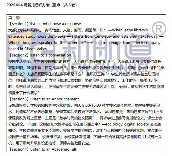 本文为新航道长沙学校雅思教研组整理新航道2026年4月托福听力考试分析。每场考试结束后,新航道雅思老师及时推送本场考试的完整版考题回忆和解析。可关注新航道长沙学校官方网站http://cs.xhd.cn,雅思分析、托福分析栏目将及时更新,帮助小伙伴们更好的备战雅思托福!