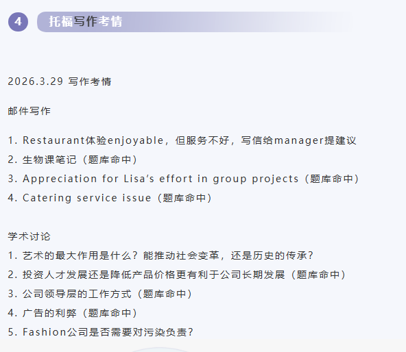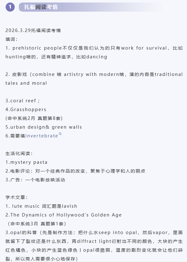 本文为新航道长沙学校托福教研组整理新航道2026年3月29日托福考试回忆。每场考试结束后,新航道托福老师及时推送本场考试的完整版考题回忆和解析。可关注新航道长沙学校官方网站http://cs.xhd.cn,雅思分析、托福分析栏目将及时更新,帮助小伙伴们更好的备战雅思托福!!