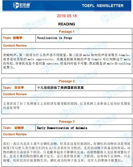 本文为新航道长沙学校托福教研组整理2019年5月18日托福考试回忆。可关注新航道长沙学校官方网站https://cs.xhd.cn,雅思预测、托福预测栏目将及时更新。