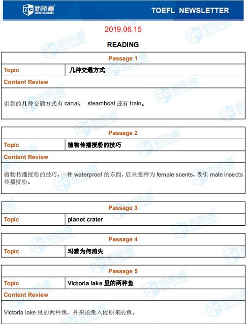 本文为新航道长沙学校托福教研组整理2019年6月15日托福考试回忆。可关注新航道长沙学校官方网站https://cs.xhd.cn,雅思预测、托福预测栏目将及时更新。