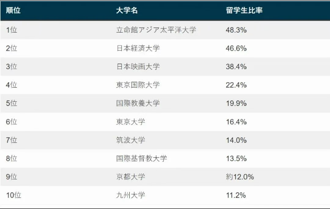 以下是2025年日本大学留学生比例排名前十的院校及其基本情况: