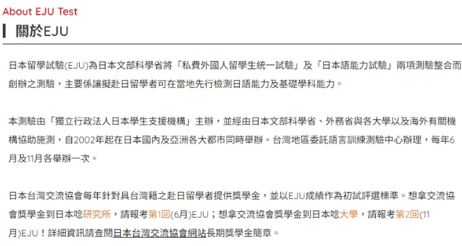 日本留学生考试(EJU)由独立行政法人日本学生支援机构(JASSO)主办,是评估外国留学生是否具备日本大学本科学习能力的标准化考试。