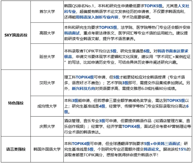 博士:4-6级不等,首尔大、高丽大、延世大等顶流名校需6级;公立/地方院校4-5级有机会;部分中文/双语授课项目可放宽甚至免要求。