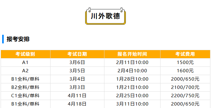 ②4月18日B1考试为川外歌德考试团队在成都组织的考试专场,考试地点在成都市武侯区内,详细考试地址会在报名成功后通过邮件发送。